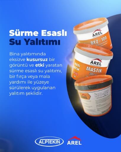 Her sürülen malzemenin su yalıtımı yapmayacağı bilinmesi gereken bir husustur. Çatlamaya meyilli veya düşük elastikiyetli ürünler veya yüzeye tutunmayan malzemelerin su yalıtım etkisi yoktur. Bunlar kısa süre sonra kabarır ve soyulur. Sonuçta sızan su yolunu bulur ve alt katmanlara ilerler. Alptekin Kimya’nın sürülerek kullanılan su yalıtım malzemeleri AREL marka yerli üretim olarak birçok alanda tercih edilmektedir.